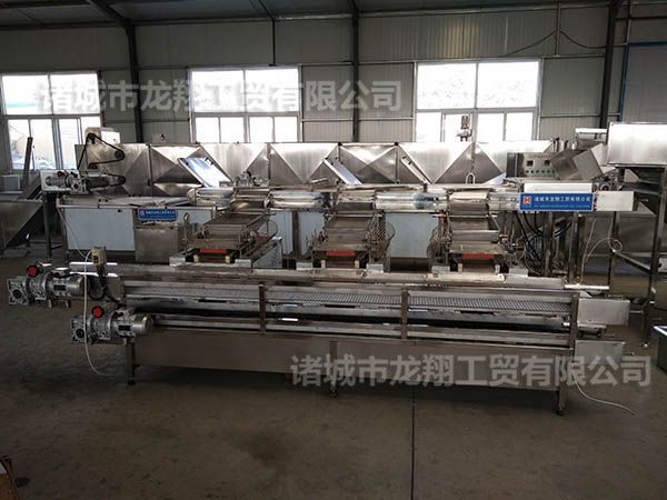 現(xiàn)我公司新研制開發(fā)的蛋制品定心蒸煮鹵制線,改進(jìn)現(xiàn)在夾層鍋,殺菌鍋等設(shè)備的缺點(diǎn)。現(xiàn)蛋品的生產(chǎn)量達(dá)到5T/天/8小時(shí),有蛋品破損少、產(chǎn)量高、蛋品定心,方便剝皮機(jī)的去皮等優(yōu)點(diǎn)。適合于禽類雞蛋、鵪鶉蛋等蛋品。使用人工2一-3人。